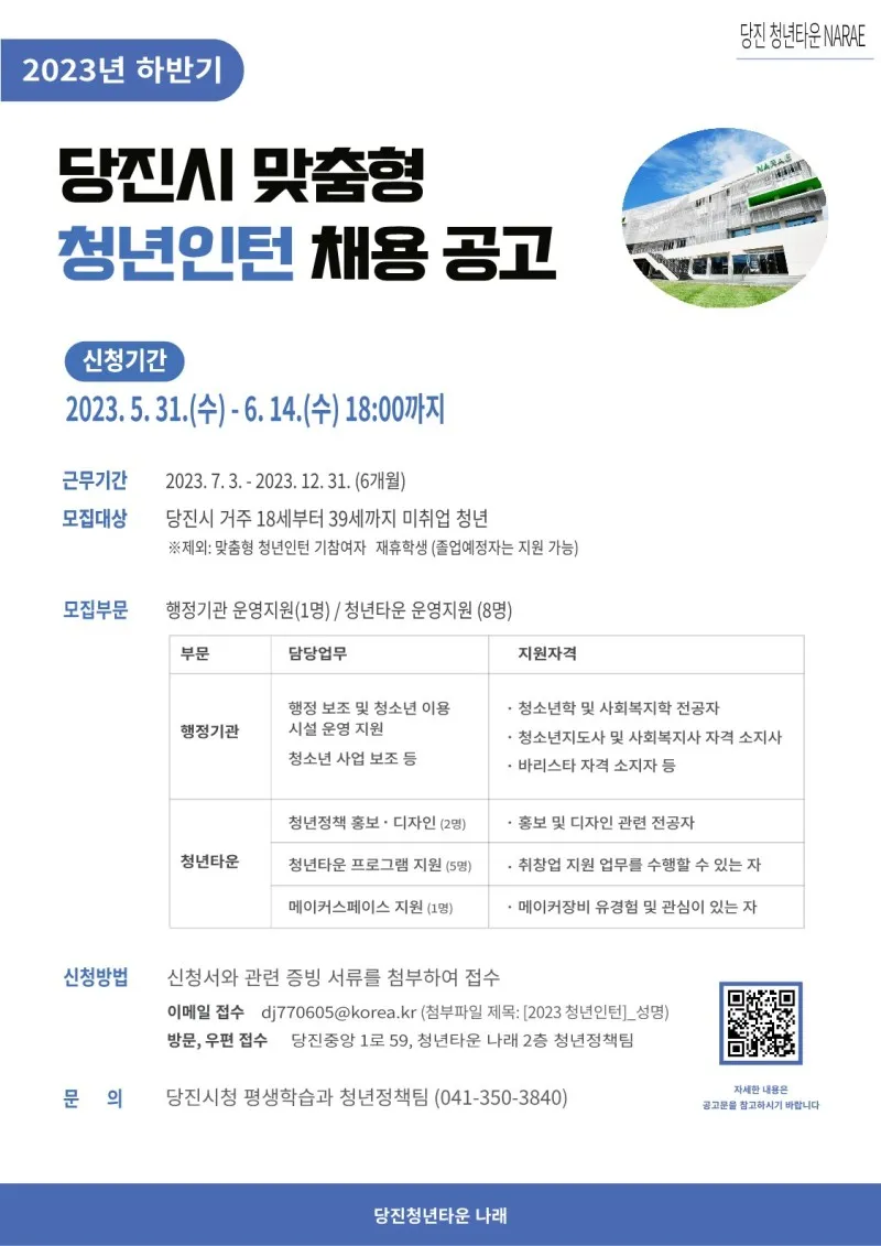 2023년도 하반기 당진시 맞춤형 청년인턴 모집 안내