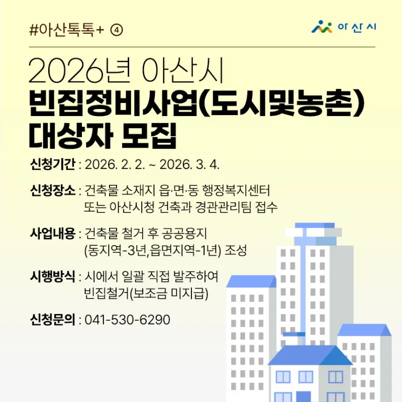 2026년 아산시 빈집정비사업(도시및농촌) 대상자 모집