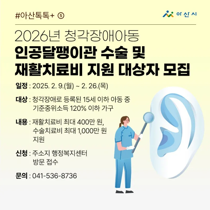 2026년 청각장애아동 인공달팽이관 수술 및 재활치료비 지원 대상자 모집