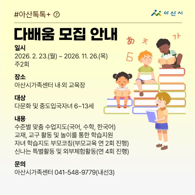 문의 : 아산시가족센터 041-548-9779(내선3)