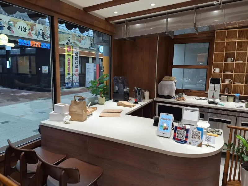 가게 곳곳에 우드 소품과 작은 화분들로 꾸며놓아 아기자기한 카페 분위기를 느낄 수 있었고요.