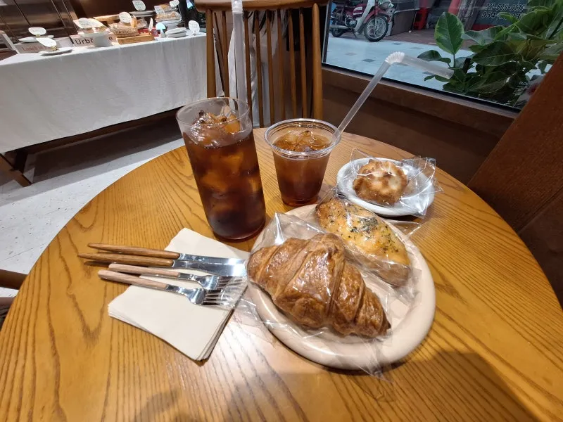 주문한 빵과 음료를 자리에 가져다주시고 포크, 나이프도 챙겨주셨어요~