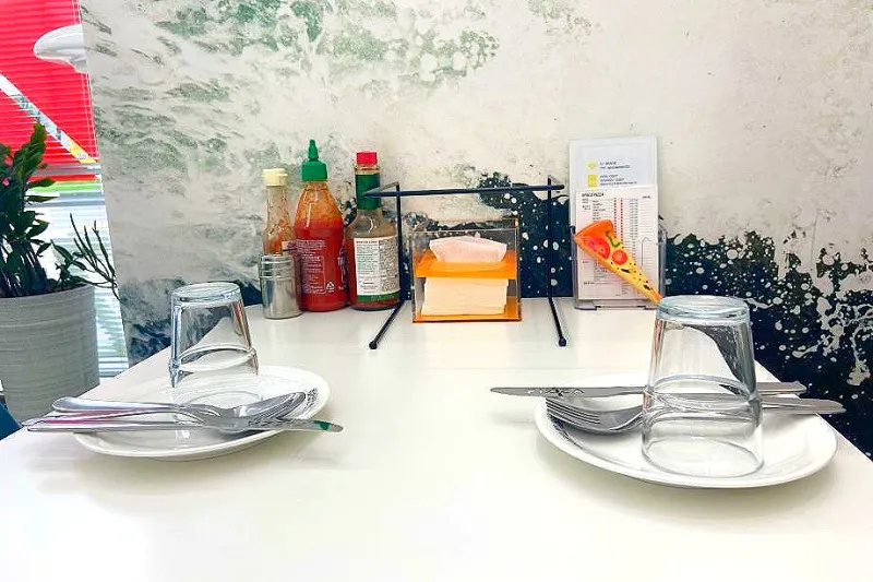 인테리어의 한부분인 듯 무심하게 쌓여 있는 피자 박스도 나이프에 새겨진 pizza 글씨까지 내가 피자가게에 있구나 하고 잊지 않을 것 같아요.^^