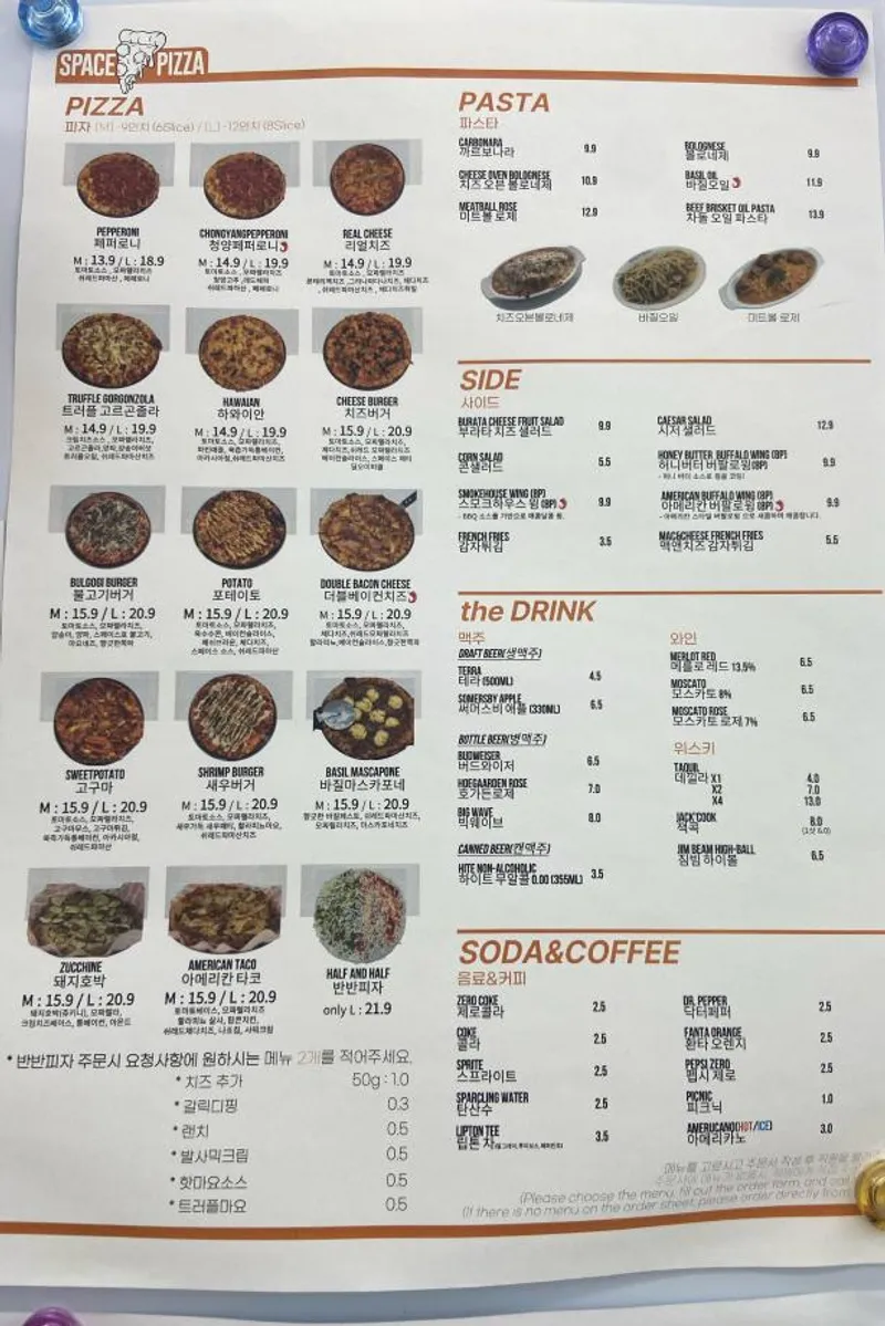 서로 취향이 다르다고 걱정하지 마세요. 스페이스 피자 주문시 반반도 가능하다고 합니다.