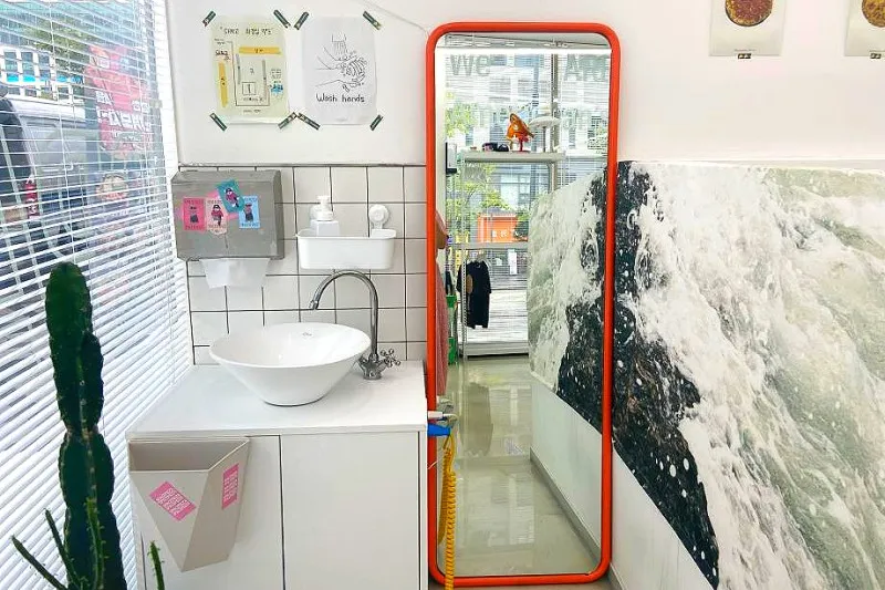 건물 공중 화장실을 써야하는 곳은 식사 전 손 씻기 귀찮은데 스페이스 세종은 손을 씻는 세면대가 매장 안에 위치하고 있습니다.