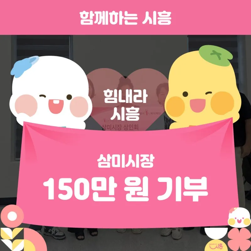 시흥시 신천동에 있는 시흥 대표 전통시장인 삼미시장이 지난 8월 26일 삼미시장 상인회 교육장에서 시흥시1퍼센트복지재단에 150만 원을 기부했습니다. 이번 기부금은 지난 7월 12일부터 8월 10일까지 신세계사이먼 시흥 프리미엄 아울렛이 주최한 전통시장 활성화 행사에서 마련된 수익금 전액입니다.