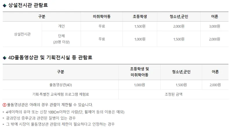 휴관일 : 1월 1일, 설날 및 추석 당일, 매주 월요일