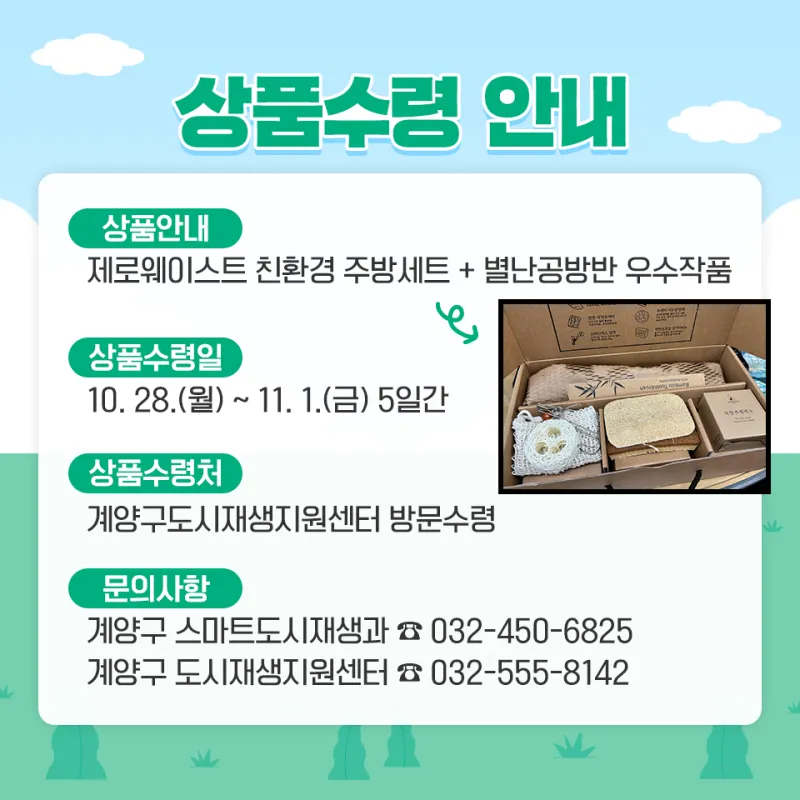 ※ 상품 수령 시 계양구민 또는 계양구 사업장 재직여부를 확인할 수 있는 서류 지참 바랍니다.