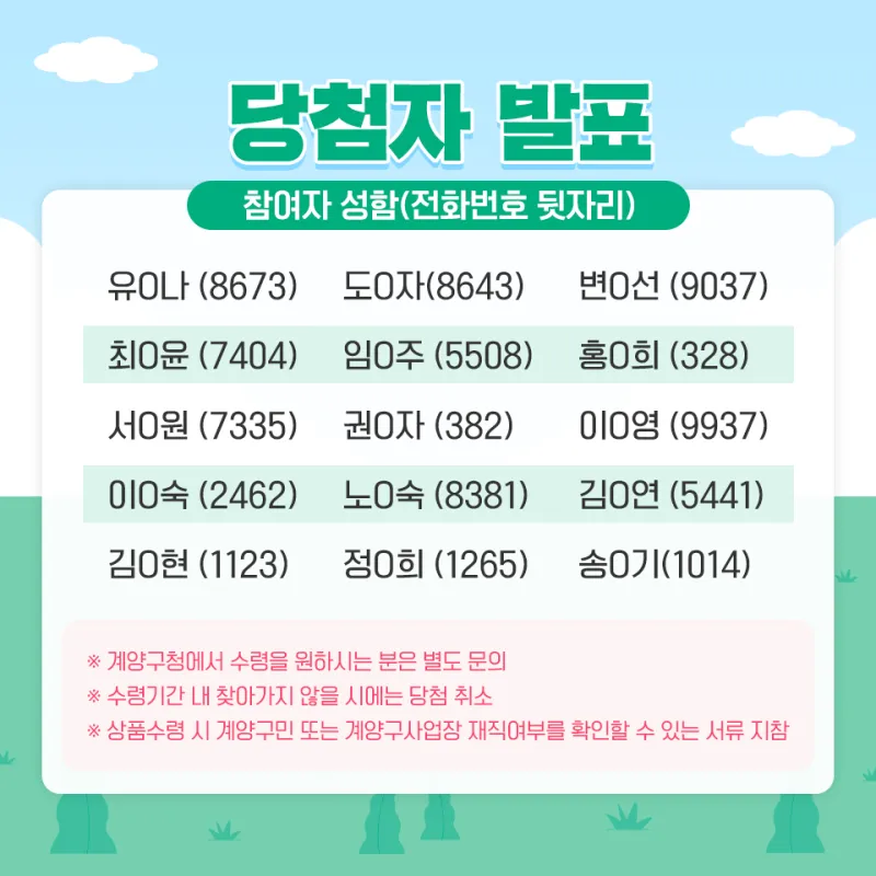 ※ 수령 기간 내 찾아가지 않을 시에는 당첨이 취소될 수 있습니다.