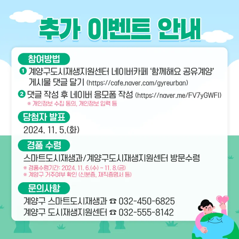 [당첨자 발표 및 추가 이벤트 안내] 인천시 공유경제 자치구 공모사업 '함께 해요 공유계양!' 성과공유전시회 인증샷 이벤트 당첨자 발표 및 추가 이벤트 안내