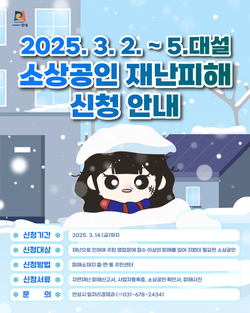 2025. 3. 2. ~ 5. 대설 소상공인 재난피해 신청 안내