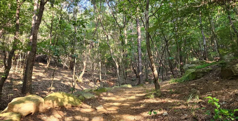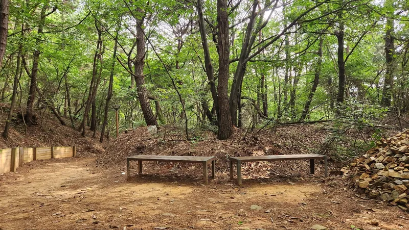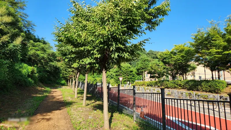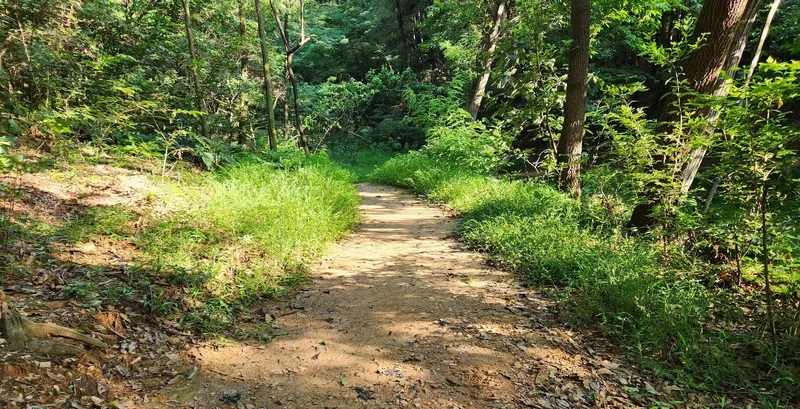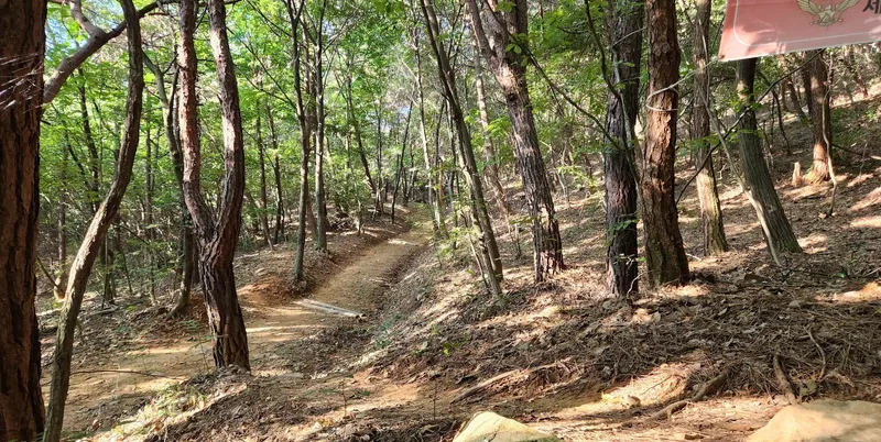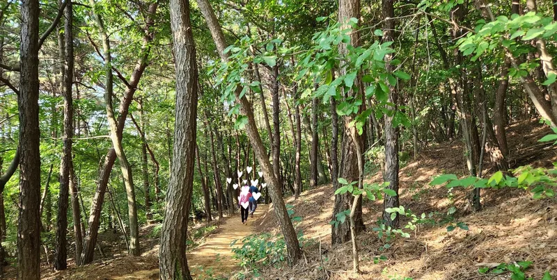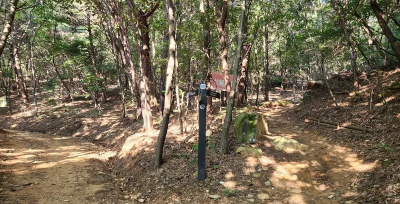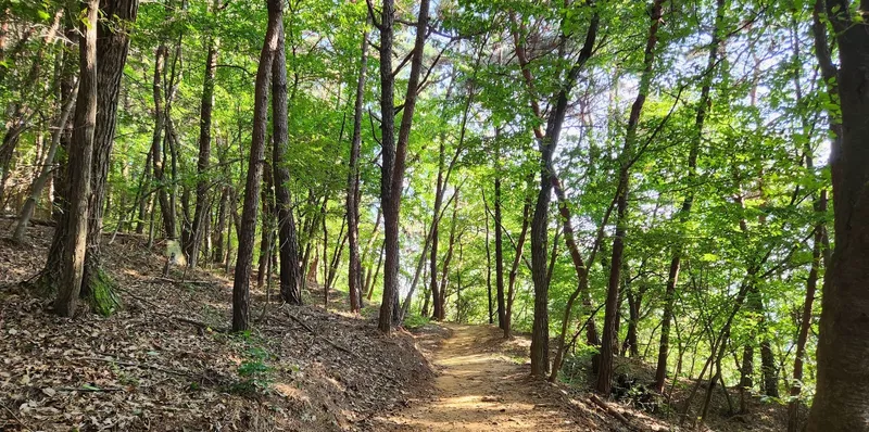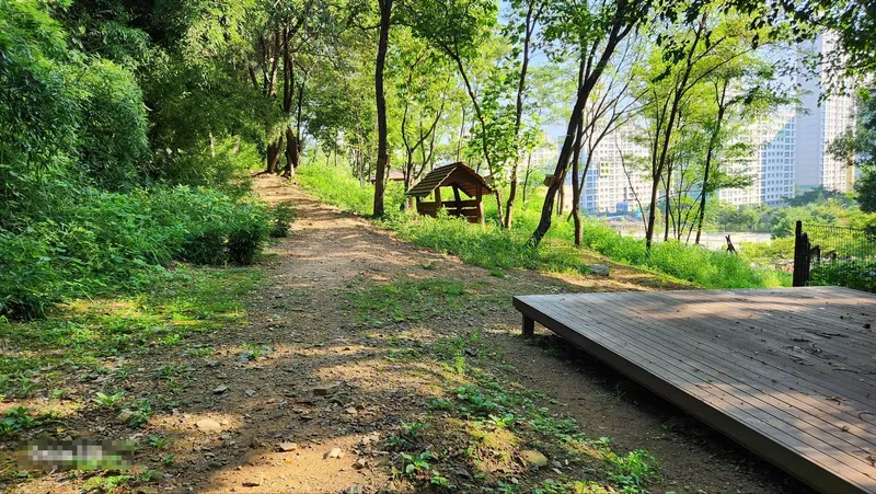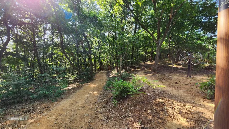 짧은 산책을 하고 싶다면 왼쪽의 기존 둘레길 쪽으로 가시면 좋습니다. 진입로에서 약 500걸음 정도의 거리를 왕복하면서 산책하기 좋습니다. 길도 평탄하고 좁지 않고 무난합니다. 거의 그늘이구요.
