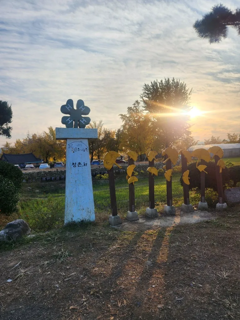 마을 곳곳에 세워진 허수아비가 더욱 정감이 가는 마을 정촌 마을입니다.