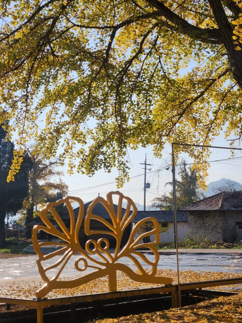 없었던 것은 마을 안에는 바닥이 노란 은행잎으로 가득한 모습이 장관이었기 때문입니다.