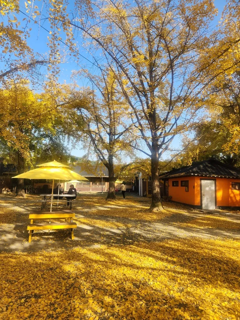 이곳에서는 글귀에서처럼 여행을 하다 노란 은행의 물결에 반해 들어서 점시 쉬어갈 수 있는