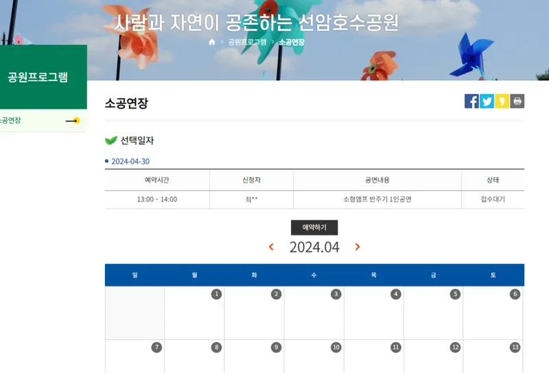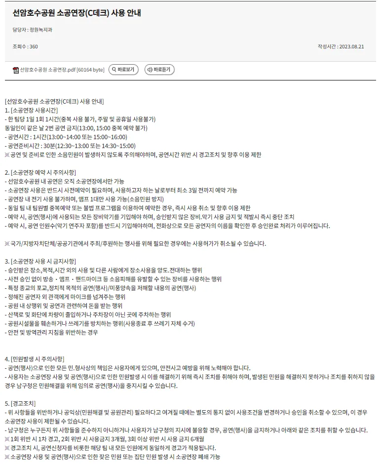 선암호수공원 홈페이지에서 관리하는 선암호수공원의 소공연장입니다! 광활한 공원의 크기만큼 가장 많은 사람들이 지나다니는 장소가 아닐까 싶은데요, 그래서인지 선암호수공원의 소공연장은 버스킹 장소로 꽤나 인기가 있는 듯 했습니다ㅎㅎㅎㅎㅎㅎㅎ