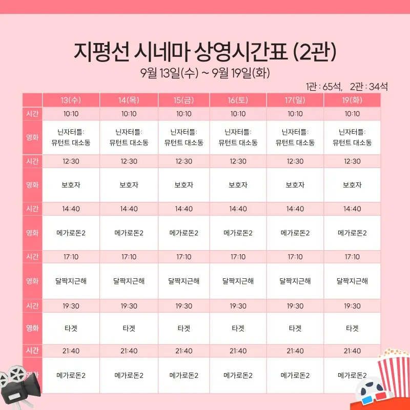 지평선 시네마 상영시간표 안내(9월 13일 ~ 9월 19일)