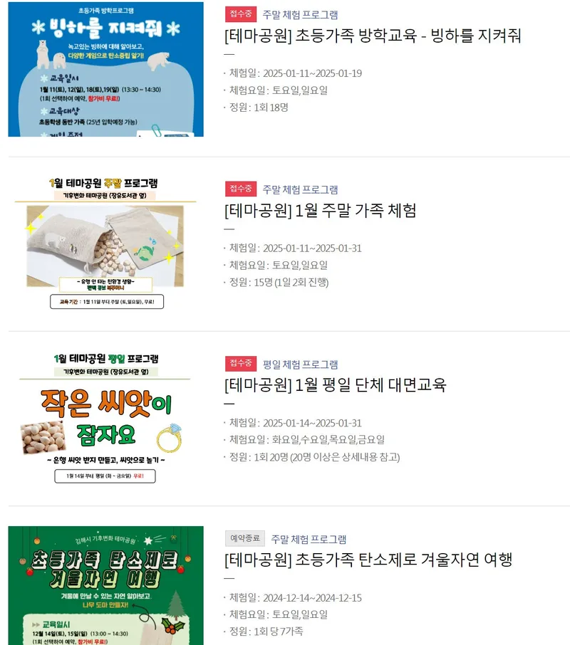 기후변화 테마공원 홈페이지에 들어가면 다양한 프로그램도 예약할 수 있습니다.