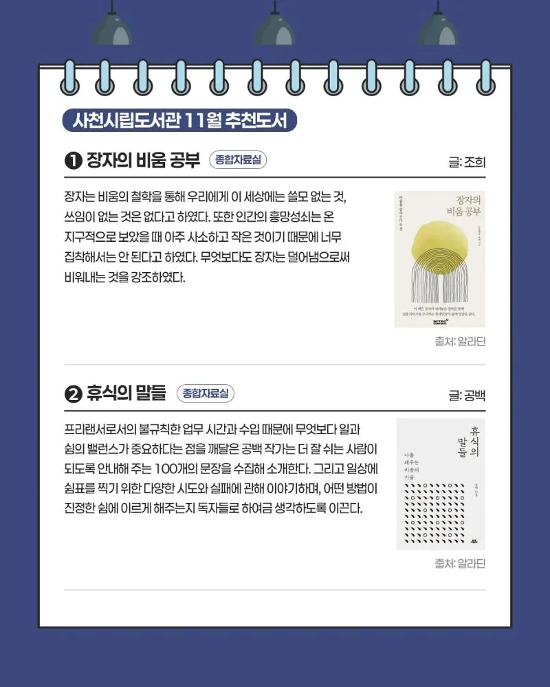 사천시립도서관 및 어린이도서관 11월 추천도서 안내