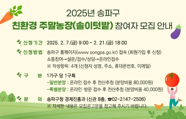 2025 송파구 친환경 주말농장(솔이텃밭) 참여자 모집