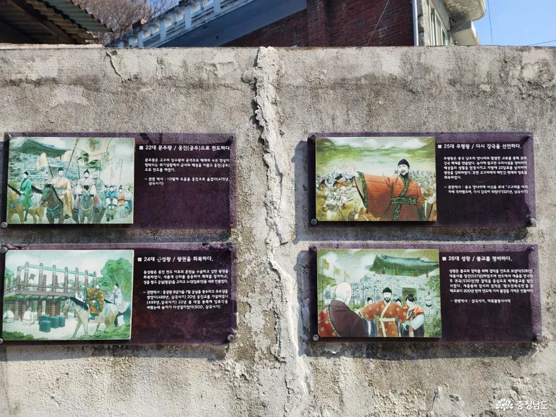 가는 길 담에 백제 왕들의 업적과 관련 그림이 있어서 백제 왕들에 대한 이해를 돕습니다.