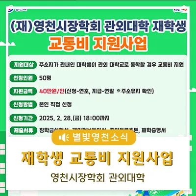 (재)영천시장학회 관외대학 재학생 교통비 지원사업