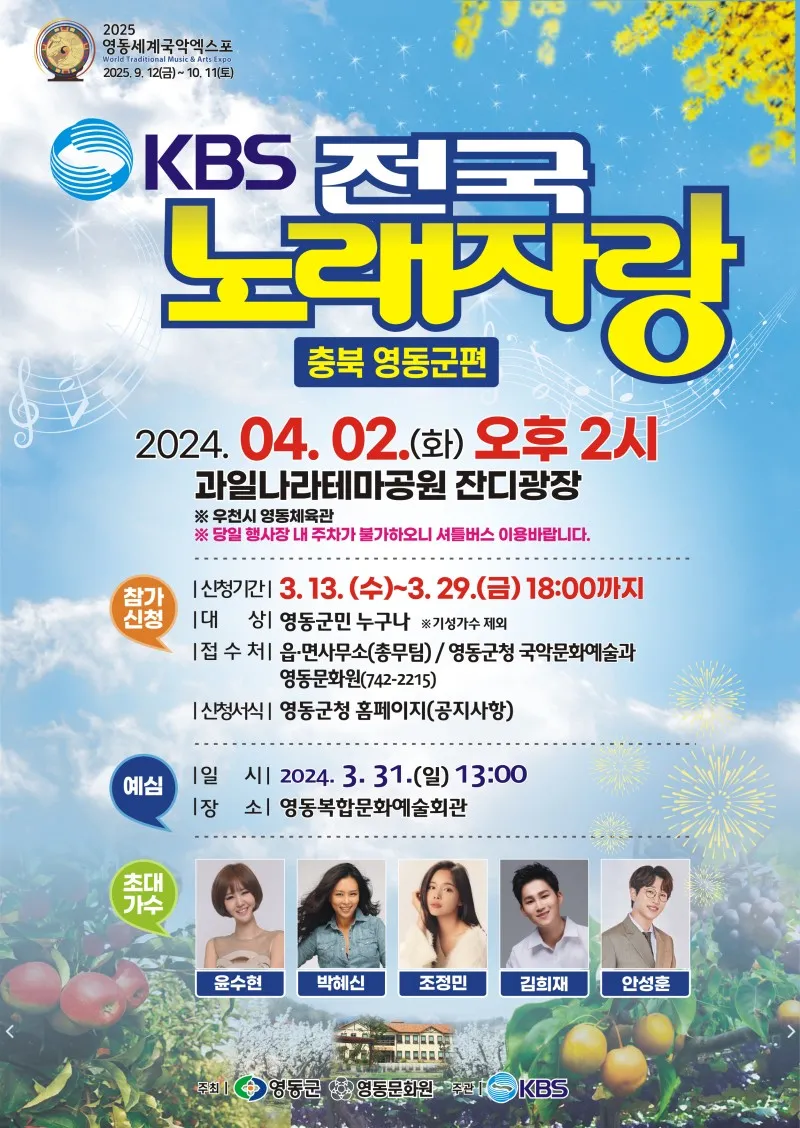 2. 전국 노래자랑 영동군편, 4월 2일 과일나라테마공원에서 열려