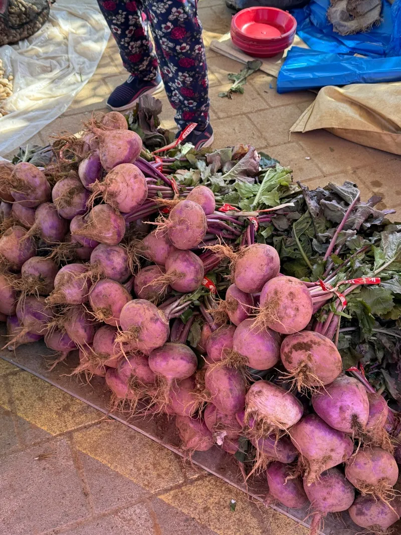 시장의 곳곳에는 갓 담근 순무김치 향이 가득 퍼지고,