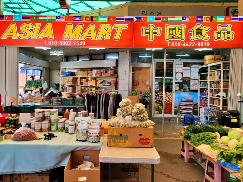 여느 장터와 마찬가지로 없는 것 빼고 다 있는 장터엔 눈에 들어오는 것이 다문화가족들이 많아지면서 정착한 외국인들의 고향 맛을 찾을 수 있는 아시아마켓입니다. 장터이 맘이 읽혀집니다.