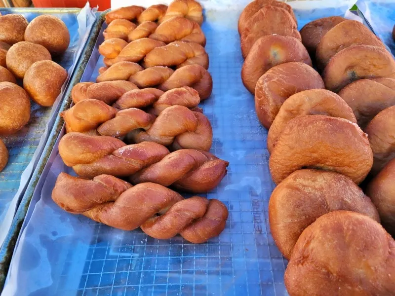 장터에서 빠질 수 없는 고소한 내가 폴폴 풍기는 간식거리들입니다.