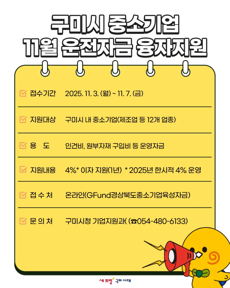 · 문 의 처 : 구미시청 기업지원과(☎054-480-6133)