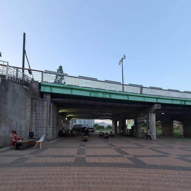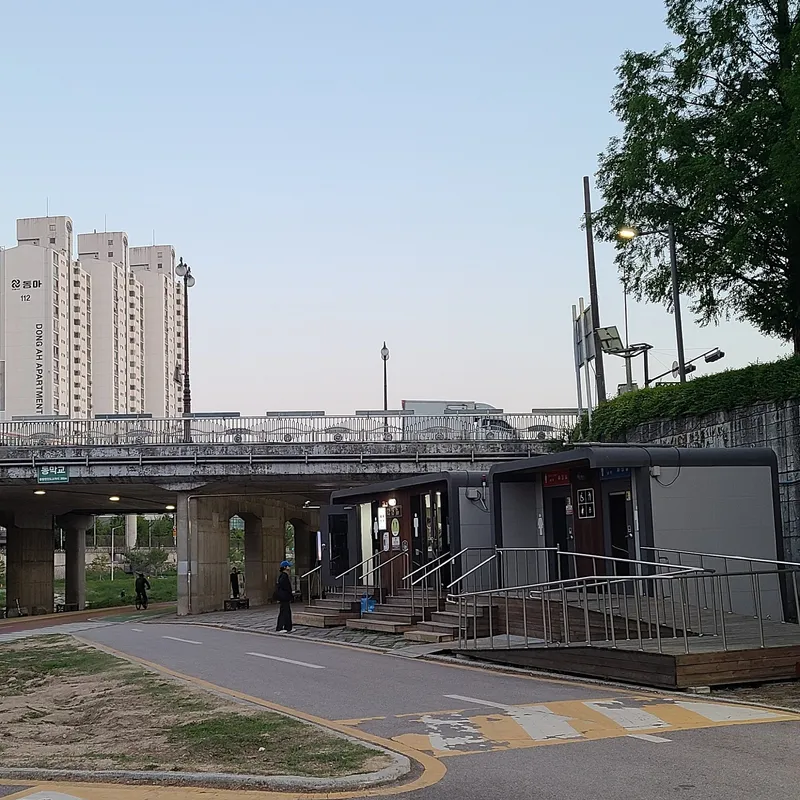 1번 출구 → 오른편 중랑천 산책로로 내려감.