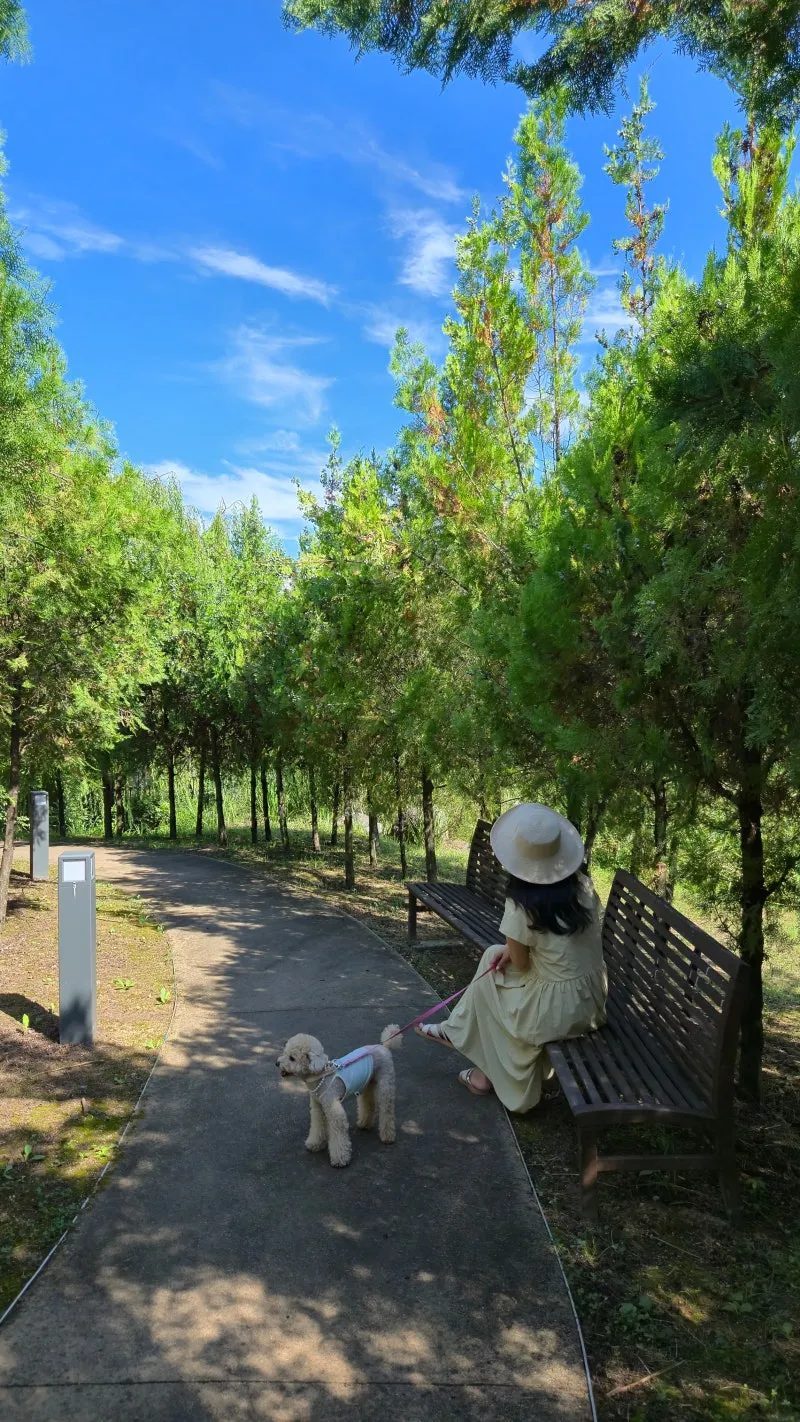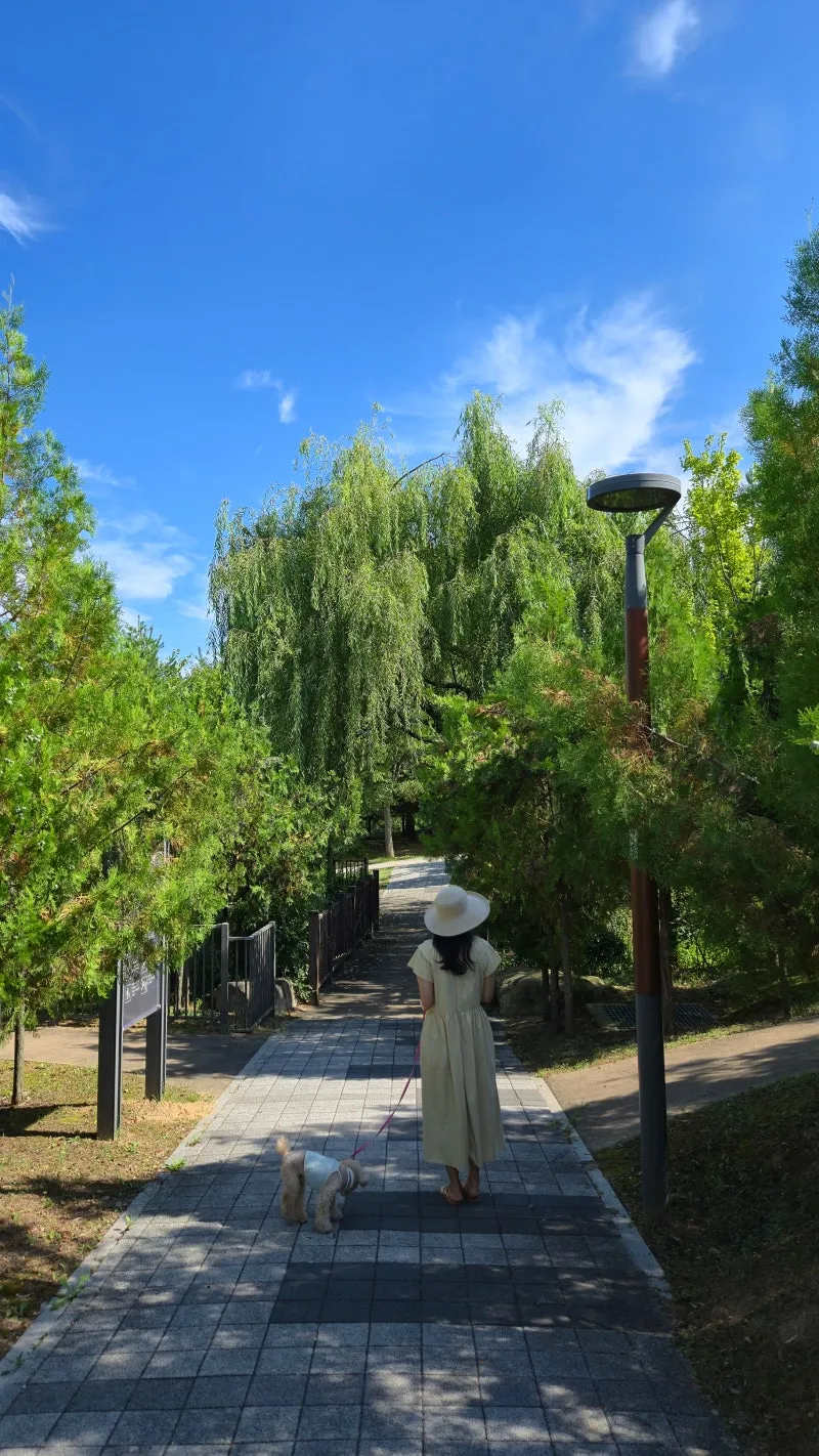 저는 강아지와 함께 공원 둘레길을 천천히 걸었는데, 중간중간 물놀이터 근처에서 아이들이 손을 흔들어 주고, 다른 반려인들과 자연스럽게 인사를 나누게 되더군요. 산책 중간에 잠시 벤치에 앉아 강아지와 함께 쉬는 시간도 참 좋았습니다.