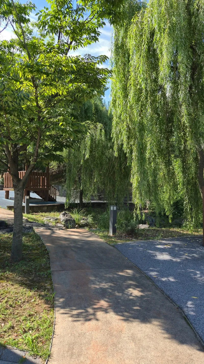 물줄기는 없었지만, 폭포 앞에 놓인 벤치와 그늘은 여전히 시원함을 주었습니다. 아이들은 공원 한쪽에서 뛰어놀고, 어른들은 벤치에 앉아 이야기를 나누거나 휴대폰을 보며 한참을 쉬고 있었습니다. 저도 폭포 앞에 앉아 있으니 바람결이 부드럽게 스쳐 지나가고, 여름 특유의 뜨거움이 잠시 잊히더군요.