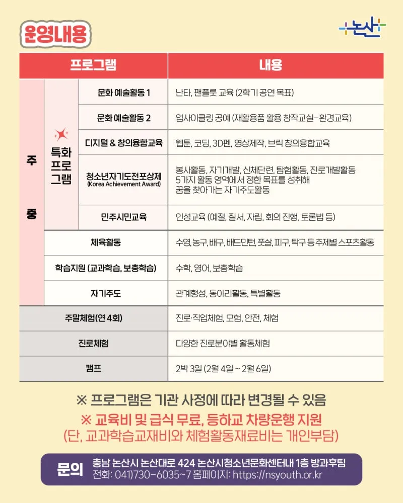 ✅ 모집 대상: 논산시 초등 4~6학년