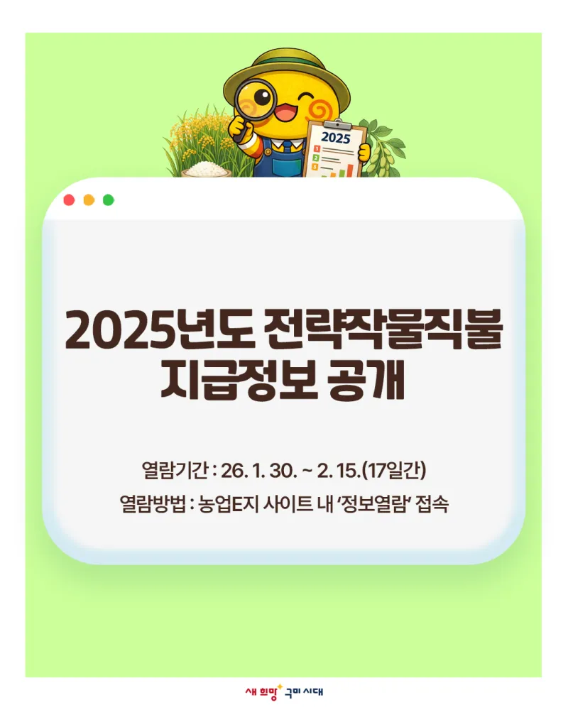 2025년도 전략작물직불 지급정보 공개