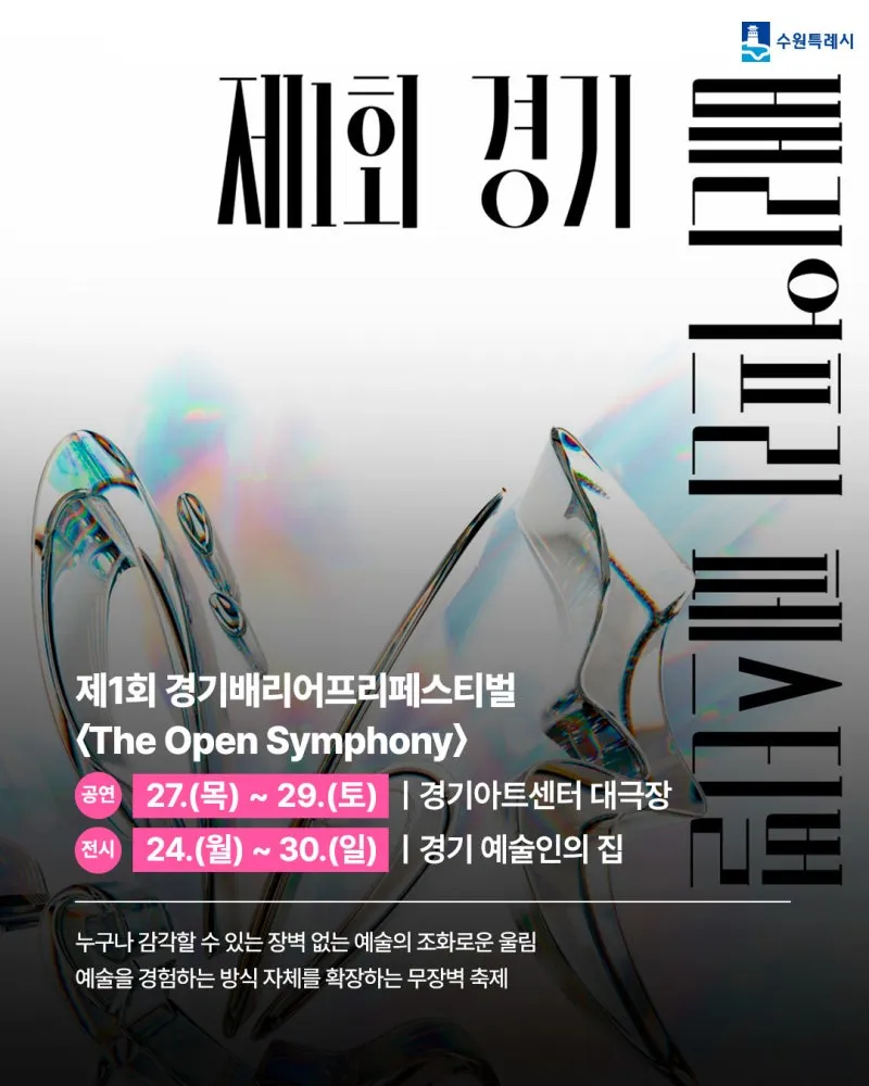 누구나 감각할 수 있는 장벽 없는 예술의 조화로운 울림! 예술을 경험하는 방식 자체를 확장하는 무장벽 축제로 여러분을 초대합니다. 이번 축제는 경기아트센터에서 열리는 3개 공연과 경기 예술인의 집에서 진행되는 전시로 구성됩니다.