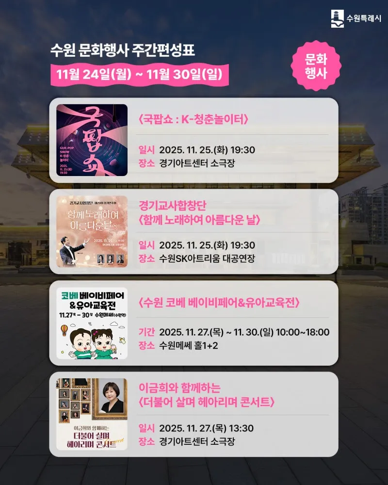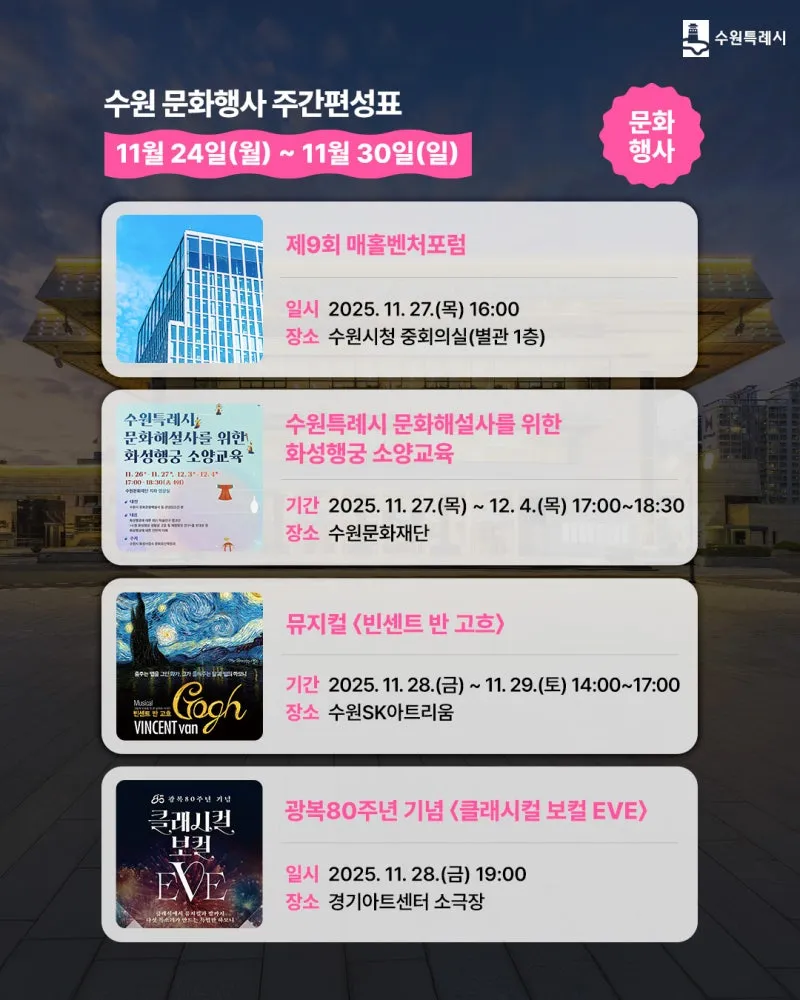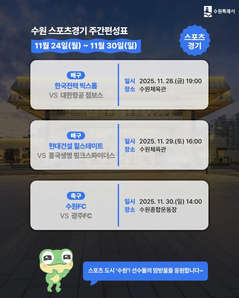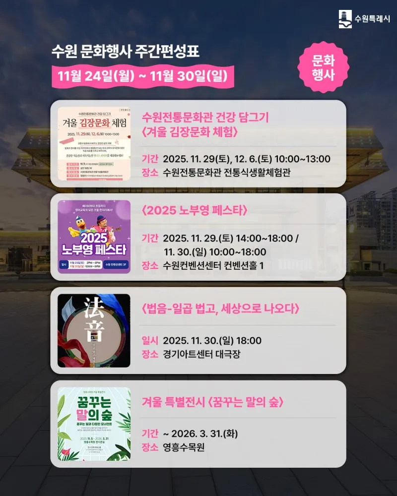 수원 [11월 넷째 주] 문화 행사&스포츠 경기 일정 안내