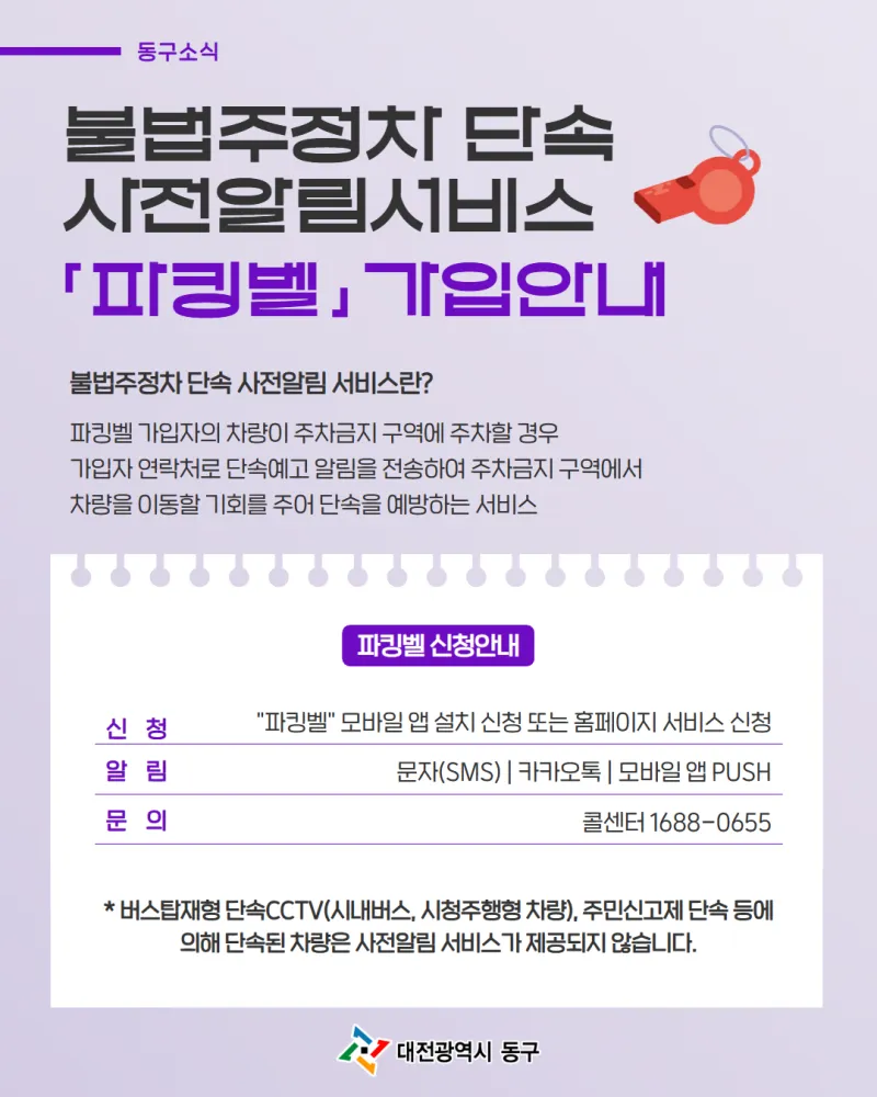 불법주정차 단속 사전알림서비스 「파킹벨」 가입 안내