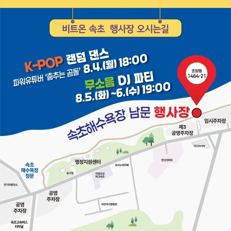 속초해수욕장 남문 앞에서 진행하니 많이들 놀러오세요🤗