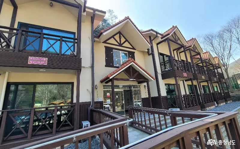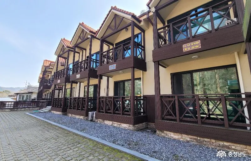 칠갑산자연휴양림을 들어서면 입구에 산림문화휴양관이 나옵니다. 교육동, 관리동, 숙박동 등 3개동 2층 건물에 나무 이름이 붙여 24개 객실이 운영됩니다. 대부분 30㎡ 넓이의 4인 가족실이며 10명이 묶을 수 있는 은행나무실(60㎡)과 느티나무실(60㎡) 등이 있습니다. 단체를 위한 부속시설로 강의실(150명)과 주차장도 넉넉합니다. 객실마다 냉장고, 이불장, TV, 화장실, 전자레인지,인덕션, 에어컨, 취사도구, 전기밥솥 등 일용품을 갖추고 있습니다.