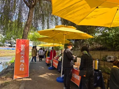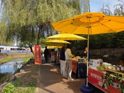 노란 파라솔들이 줄지어 서 있는 산책길을 따라, 정성스레 꾸민 부스들이 한가득 펼쳐져 있었답니다.