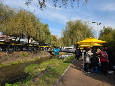 이날은 특히 먹거리 부스도 인기가 많았는데요, 그중에서도 매콤달콤한 즉석 떡볶이 냄새가 옥천변을 따라 퍼져