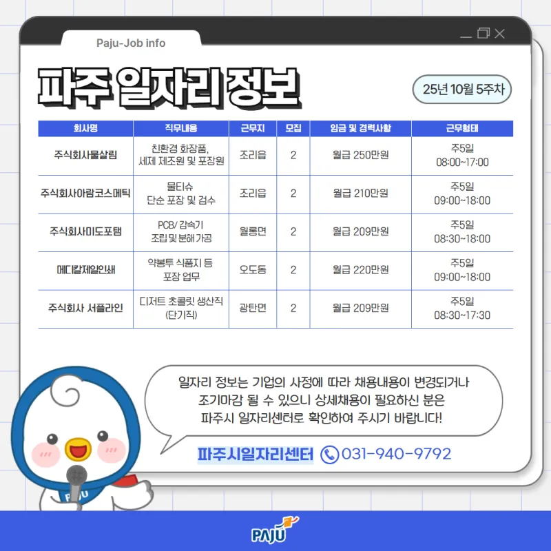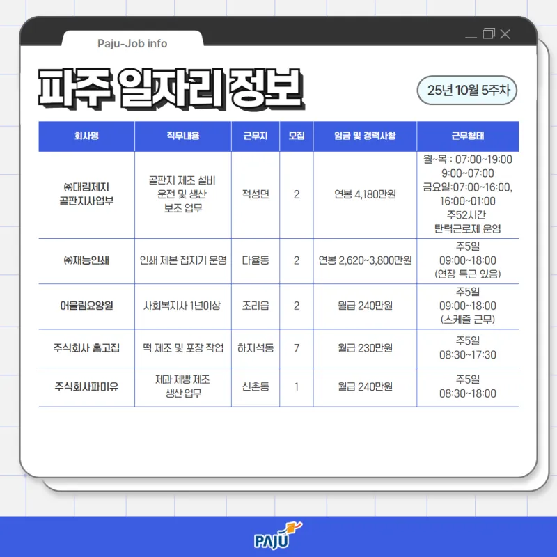 10월 5주차 파주 일자리 정보를