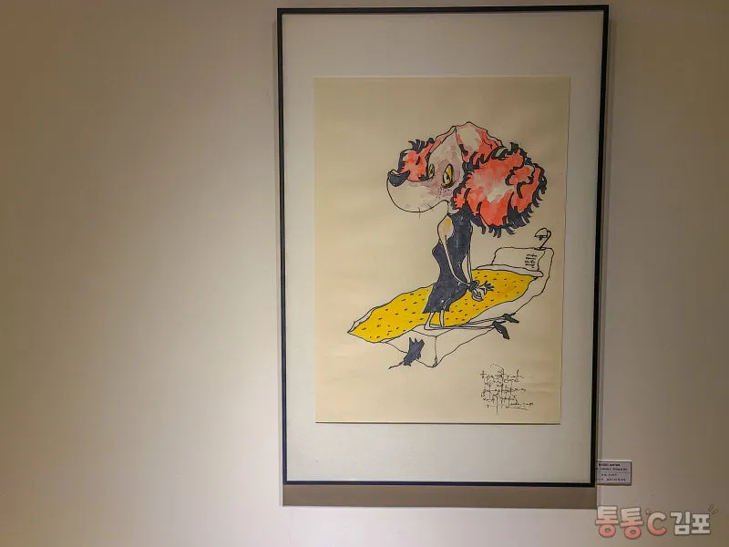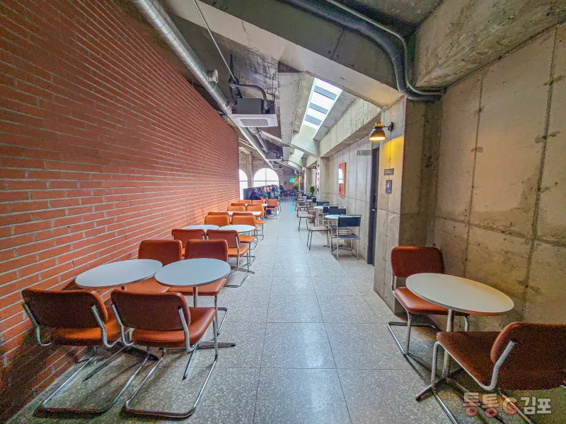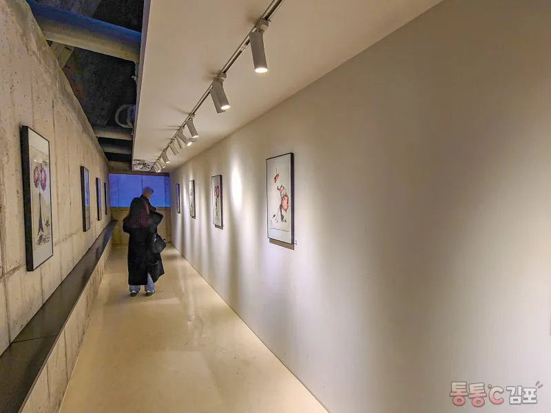 1층에서 약간 위로 올라갈 수 있는 곳에는 소소하게 전시 공간도 마련해 놓아 심심함을 없앴습니다. 안쪽 끝에는 영상도 나와서 나름 포토존의 역할도 하고 있었고요. 매번 기획 전시가 개최된다고 하니 다양한 작품도 감상할 수 있게 해놓은 점이 참 좋습니다.