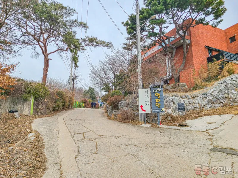 아래 주차를 하고 약간의 고바위 길을 올라 아보고가 카페로 향해봅니다. 주변이 시골처럼 한적해서 여기가 맞나 싶긴 했지만, 다행히 간판이 있어서 찾아가는데 그리 어렵지는 않았어요. 아래쪽 주차장에서 카페까지는 도보로 약 3분 정도 소요되었습니다.
