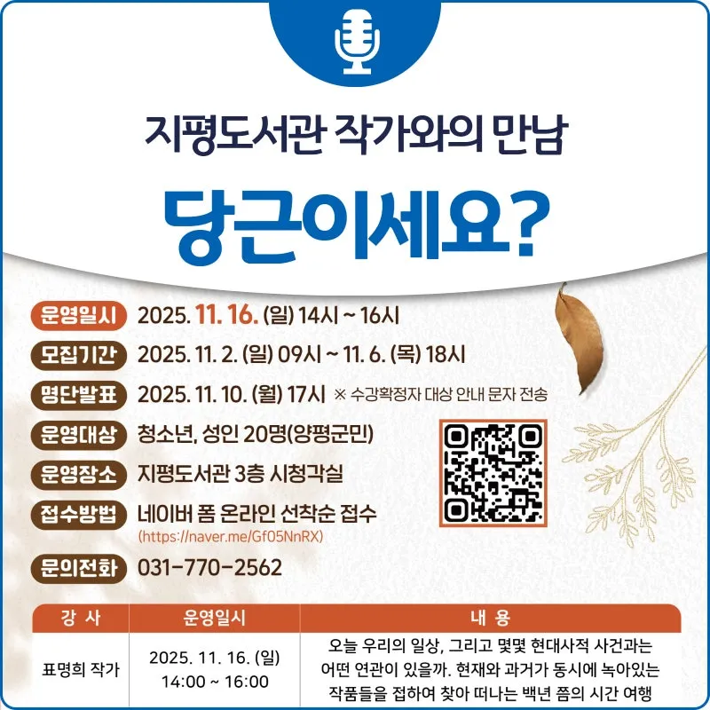 ▪️운영일시: 2025. 11. 16.(일) 14~16시