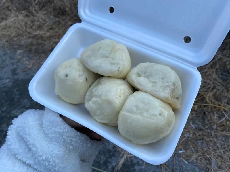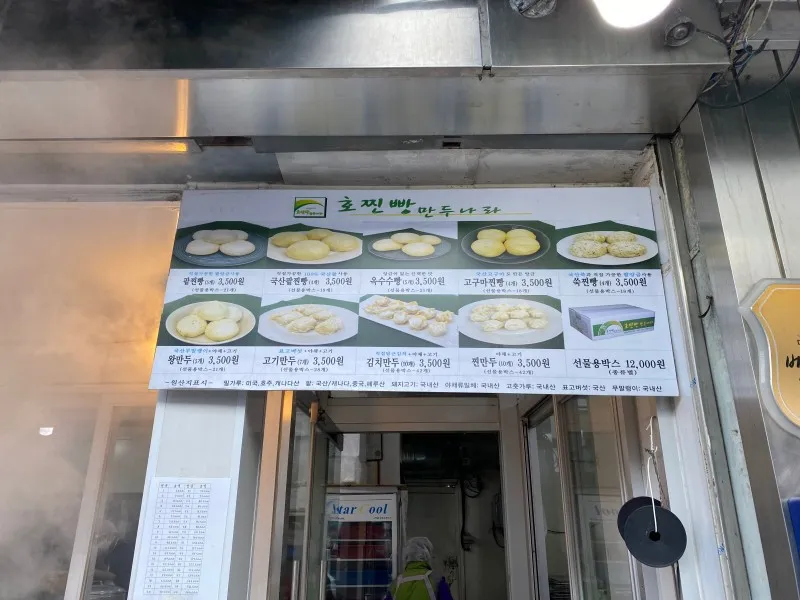 갓 찐 만두와 찐빵들을 즉시 담아주셨습니다.