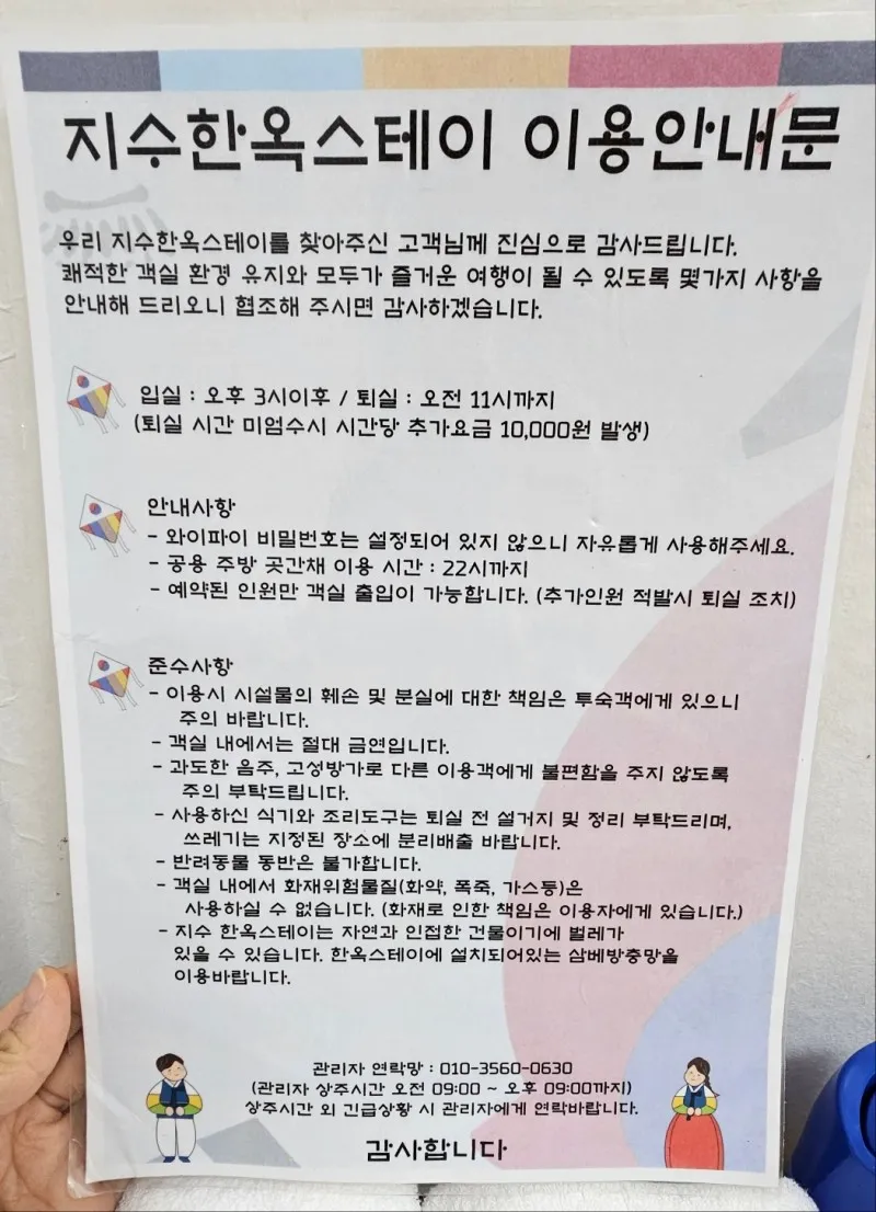 한옥체험 숙박시설 이용객을 위해