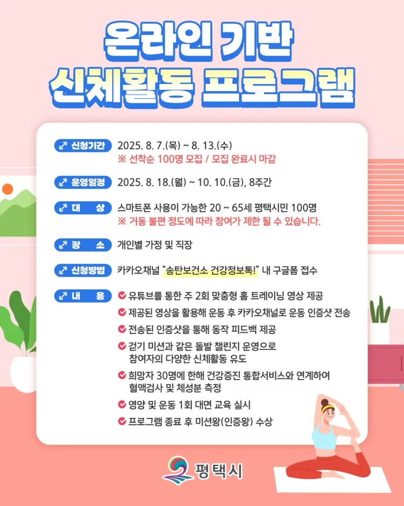 집에서도 건강하게! 2025년 하반기 평택시 온라인 신체활동 프로그램 참여자 모집합니다
